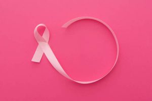 breast cancer ribbon on pink background
