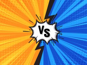 Comic Fighting Cartoon Background.Blue Vs Yellow. Vector Illustration.