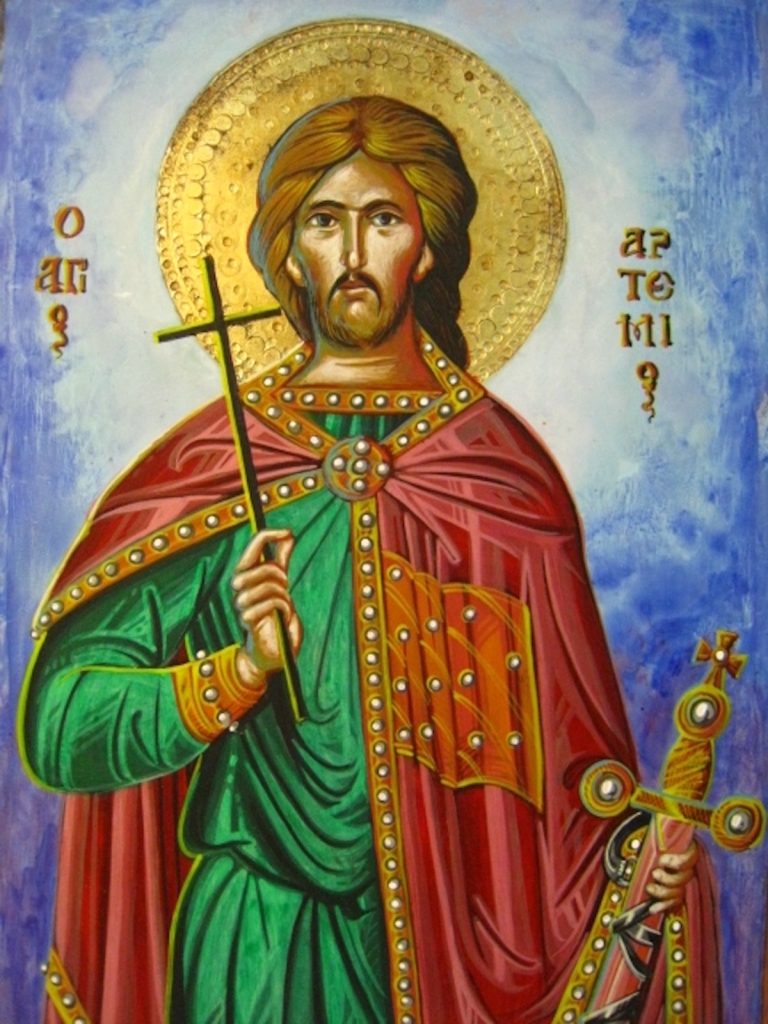 Όταν, το 363 μ.Χ., ο Αρτέμιος άκουσε ότι ο Ιουλιανός ο Παραβάτης βασάνιζε τους χριστιανούς στην Αντιόχεια, ήλθαν στα χείλη του τα λόγια του ψαλμωδού Δαβίδ προς το Θεό: «Κύριε, πνεύματι ἡγεμονικῷ στήριξόν με» (Ψαλμός Ν’ (50), στ. 14). Κύριε, στήριξε με με σκέψεις σταθερές και θέληση ισχυρή, που να κυριαρχεί μέσα μου και να με κατευθύνει στην υπεράσπιση του αγαθού με θάρρος.