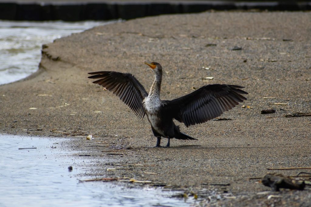 Άρχισα να κολυμπάω προς την στεριά βιαστικά όταν αναδύθηκε ακριβώς μπροστά μου με θεαματικό τρόπο. Έκανε έναν κύκλο γύρω μου και συνέχισε να κολυμπάει ώσπου άνοιξε τα μαύρα φτερά του και πέταξε μακριά ο μοναχικός κορμοράνος της παραλίας.