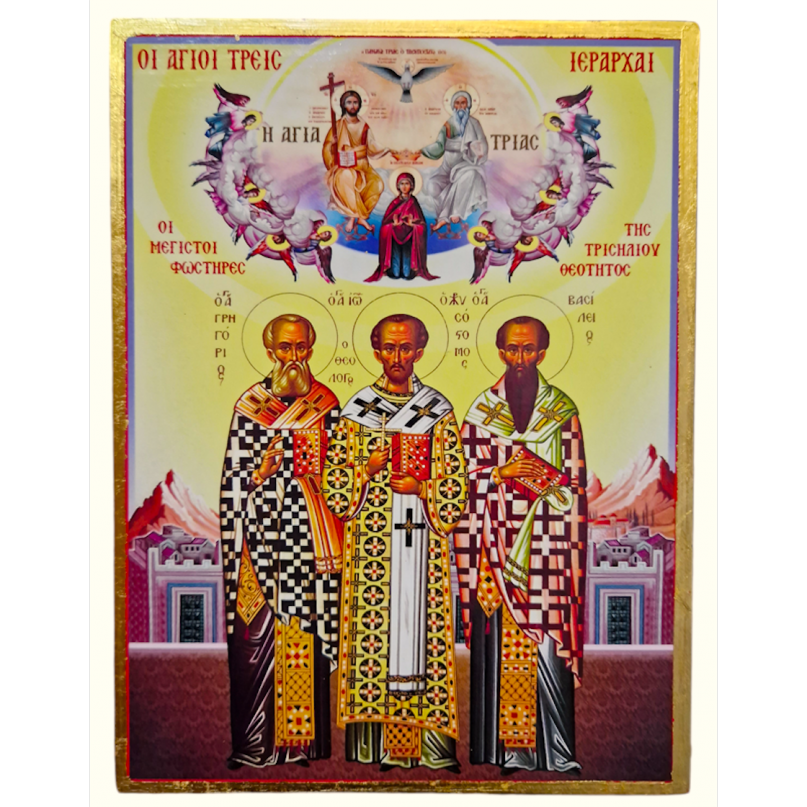 Τρία μεγάλα αναστήματα. Τρεις διάνοιες σπινθηροβόλες, πανεπιστήμονες. Τρεις καρδιές ανδρείες, γενναίες. Είναι οι τρεις Ιεράρχες, οι προστάτες των γραμμάτων, που τους γιορτάζουμε στις 30 Ιανουαρίου, όλους μαζί. Γιορτάζουμε τρεις ψυχές υπέροχα άγιες: Τον Μέγα Βασίλειο, τον Γρηγόριο τον Θεολόγο και τον Ιωάννη τον Χρυσόστομο.