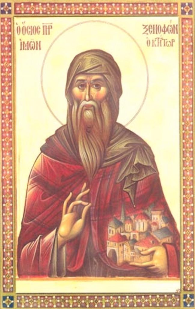 Ο Όσιος Ξενοφών έζησε κατά τα τέλη του 10ου αιώνος μ.Χ. και σκήτεψε στο Άγιον Όρος. Καταγόταν από περιφανή και πλούσια οικογένεια και είχε σπουδαία μόρφωση. Υπήρξε σύγχρονος του Αγίου Αθανασίου του Αθωνίτου, του δομήτορος της Μεγίστης Λαύρας, στο δε βίο του μαρτυρείται ότι ο Όσιος Αθανάσιος θεράπευσε τον αδελφό του Οσίου Ξενοφώντος, Θεόδωρο, ο οποίος έπασχε από την ανίατη νόσο του καρκίνου.