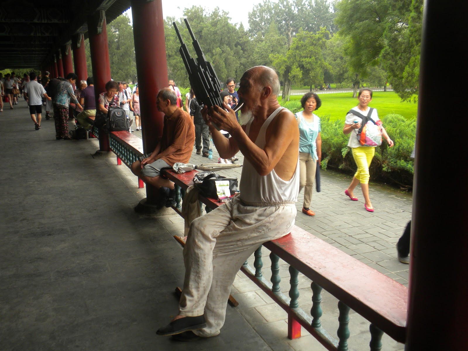 Εκτός από τους ζωγράφους σ’αυτούς τους κήπους βλέπεις παρέες κάθε ηλικίας, που πίνοντας ένα φλυτζάνι τσάι στο γραφικό τεϊοποτείο “της περισυλλογής”, μαγεύονται από τον ποιητή που απαγγέλλει τη νέα ποιητική του συλλογή ή εκστασιάζονται στο άκουσμα μιας παραδοσιακής μελωδίας εκτελεσμένης από μια αυτοσχέδια μπάντα παραδοσιακών “τσενγκ και έρχου”.