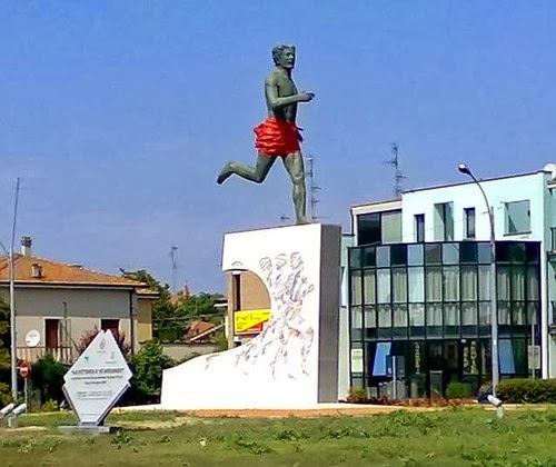 Στη γενέτειρά του, σε κεντρικό κόμβο του Κάρπι, μπορεί να θαυμάσει κανείς το άγαλμα που έχει στηθεί προς τιμήν του. Παριστάνει έναν ψηλό, μυώδη, γυμνόστηθο μουστακαλή, περισσότερο μια αλληγορία για τη δύναμη του χαρακτήρα, παρά μια αληθινή αναπαράσταση του Ντοράντο Πιέτρι, αφού ο ιταλός αθλητής είχε μόλις 1,58 εκατοστά ύψος!