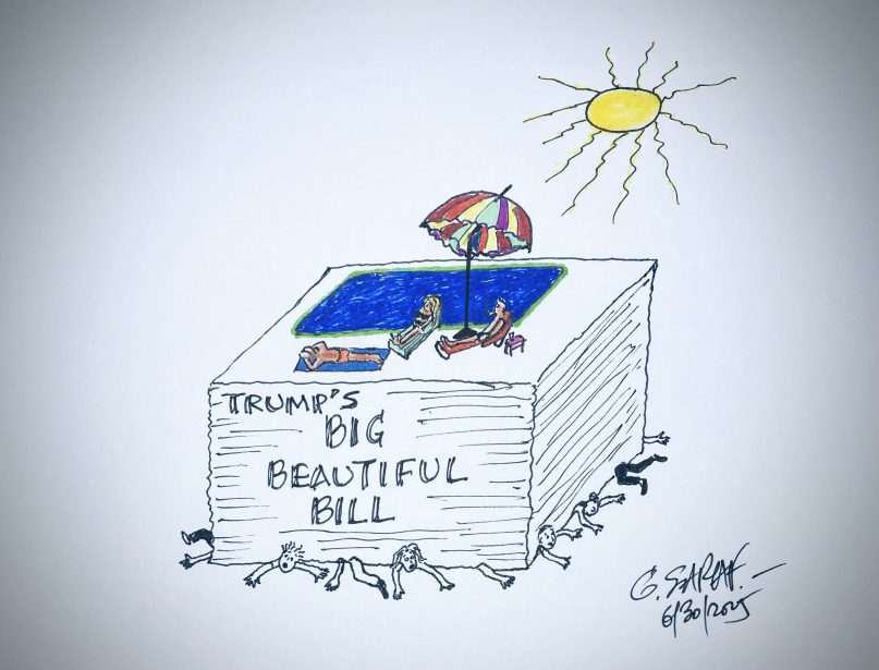 Για όσους δεν γνωρίζουν περί αυτού του Νομοσχεδίου που προωθεί ο Τραμπ, το οποίο ονομάζει «Το Μεγάλο Όμορφο Νομοσχέδιο» περιληπτικά να σας πώ ότι πετσοκόβει κοινωνικά προγράμματα και βοηθήματα που αφορούν την υγεία και την σίτιση των φτωχότερων στρωμάτων της κοινωνίας, την παιδεία, κλπ.